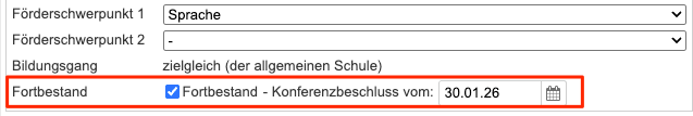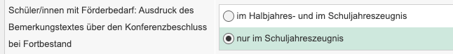 Soll im Zeugnis auch der Text zum Fortbestand des Bedarfs an sonderpädagogischer Förderung erscheinen, gehen Sie bitte wie folgt vor: